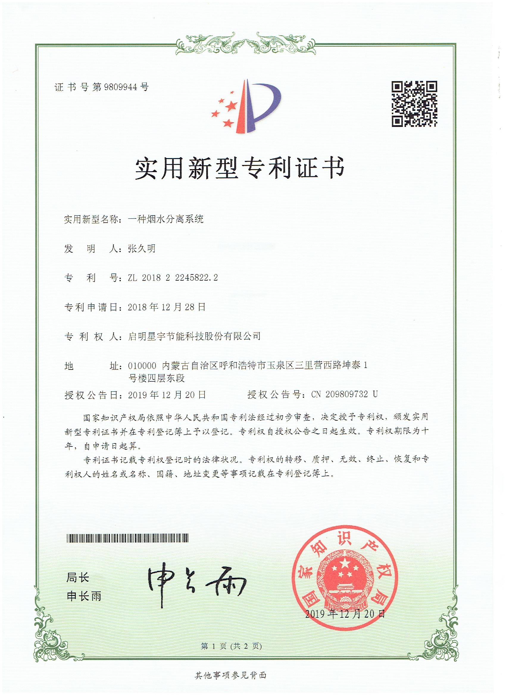 一種煙水分離系統(tǒng)實(shí)用新型專(zhuān)利