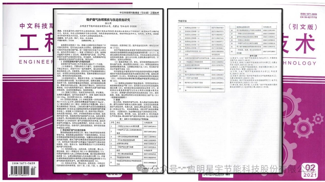 新年巨著,啟明星宇節能科技股份有限公司《工業廢氣零排放技術研究》科研論文在《中國科技人才》期刊成功發表